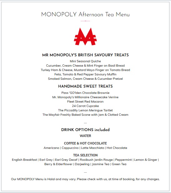Indulge in our exquisite MONOPOLY-themed afternoon tea, featuring an array of delectable treats and a selection of hot or cold drinks, all served by our friendly staff. Enhance your experience with the option to include a bottle of bubbly – choose between Prosecco or Champagne to enjoy a taste of luxury as you play.
