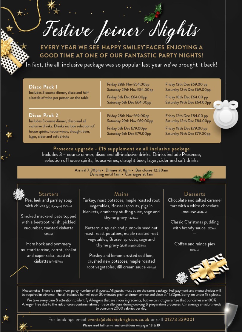 Unforgettable fun, decadent and sumptuous dishes and a night of sparkling drinks, you can’t go wrong with a festive joiner night at The Old Ship in Brighton, no matter who you’re celebrating with.
