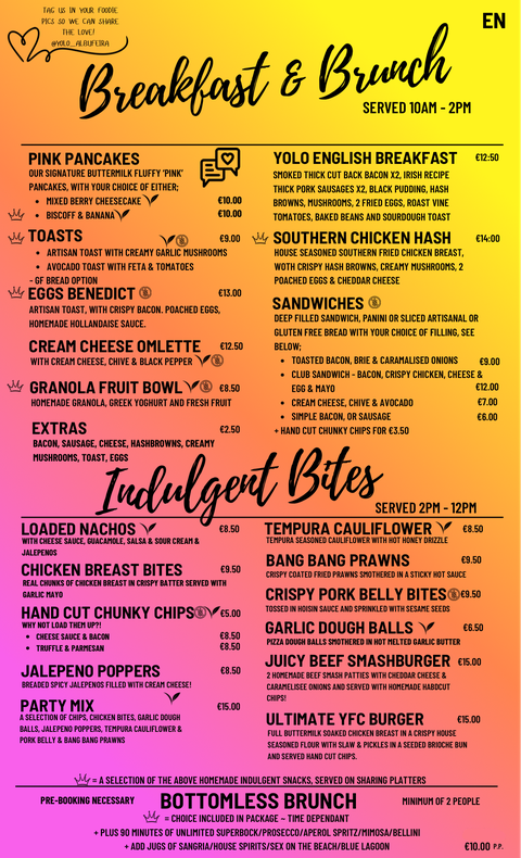 Bottomless brunch at Yolo Lounge is available daily between from 10am to 10pm. A bottomless 'indulgent bites' menu is served from 2pm.