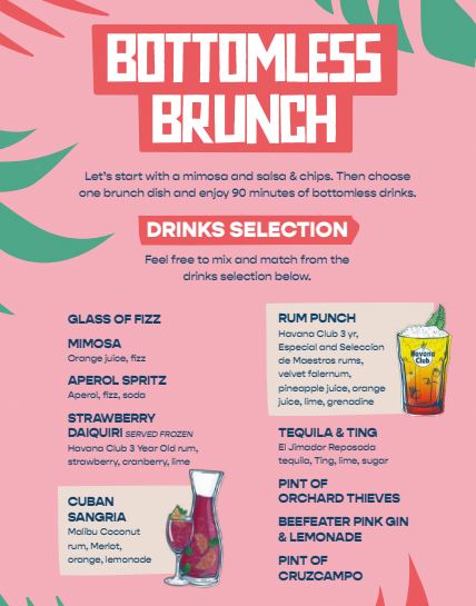 Whether celebrating a special occasion or just enjoying a weekend treat, this bottomless brunch delivers a memorable combination of tropical flavors, unlimited drinks, and Cuban-inspired fun.
