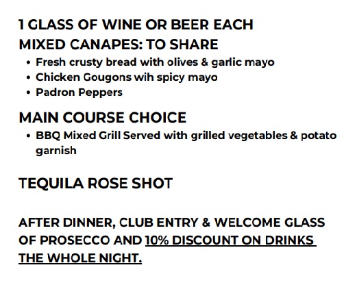 But we’re not stopping there! To toast the evening, you’ll be treated to a cheeky Tequila Rose shot, setting the tone for what’s next: VIP club entry downstairs at Rio. You’ll be welcomed into the club with a glass of prosecco and will also enjoy 10% off drinks all night long – ideal for keeping the good vibes (and cocktails) flowing.