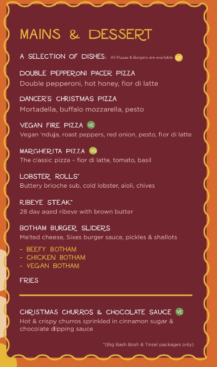 *Food upgrades including lobster, steak and roast potatoes are available to purchase as an add-on*