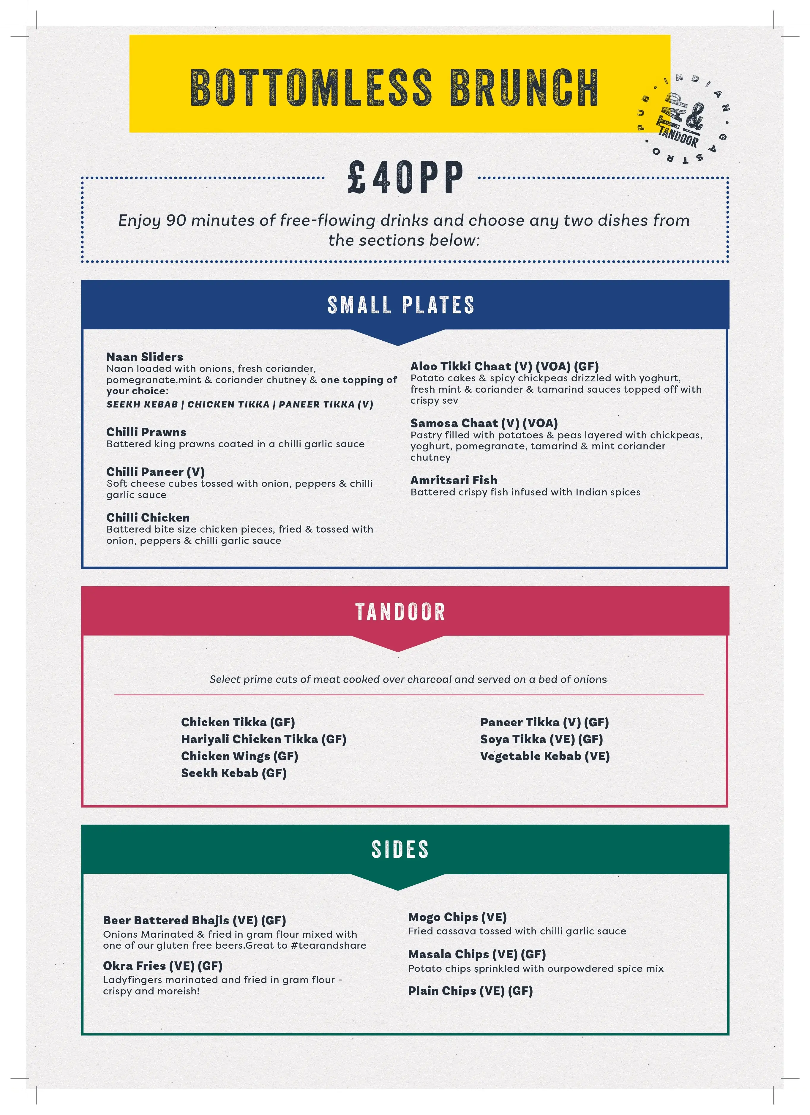 Treat yourself to the ultimate dining experience with 90 minutes of unlimited drinks and a mouth-watering selection of dishes from our Small Plates, Tandoor, or Sides menu.